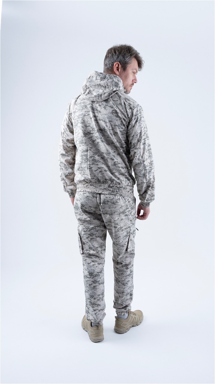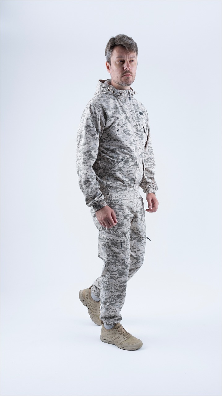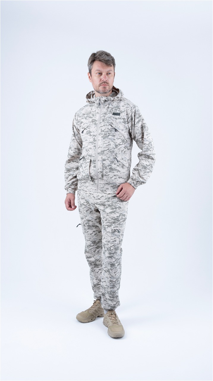Летний универсальный костюм Рысь V2  подойдет всем любителям активного образы жизни. Состоит их укороченной куртки и брюк-джоггеров. Изготовлен из легкой, дышащей и прочной смесовой ткани рип-стоп, костюм  Рысь V2 обеспечивает надежную защиту от солнечных лучей, насекомых и механических повреждений. Низ куртки и рукавов на резинке, что обеспечивает идеальную посадку, капюшон с регулировкой защитит от ветра и непогоды. Функциональные нагрудные и нижние карманы на молнии позволят хранить необходимые мелочи под рукой. Эластичный пояс брюк с широкими шлевками обеспечивает идеальную посадку и удобство движений.